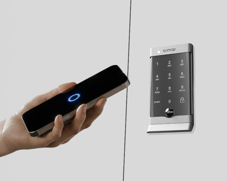 Beröringsfri öppning via mobilapp, Android® och iOS®, eller öppning via kod direkt på låspanelen.